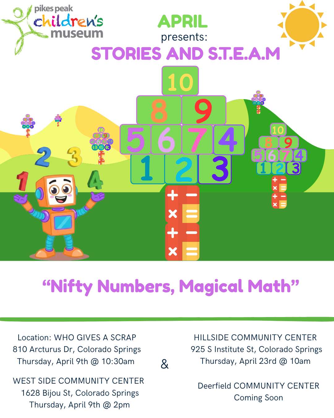 Located inside Family Success Center. Upon arrival, please check in with the front desk and ask to be directed to the Pikes Peak Children’s Museum.